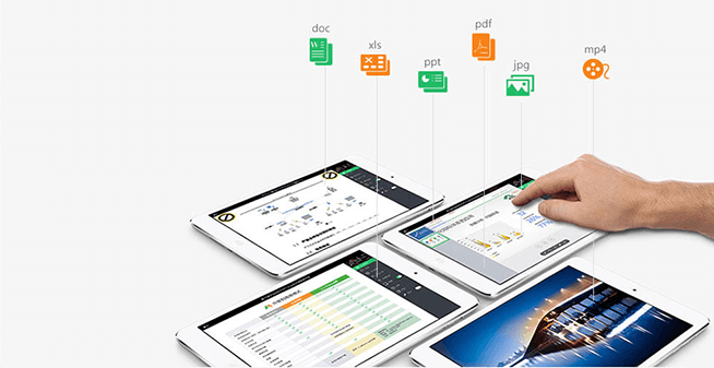 支持會議資料類型有WPS、DOC、DOCX、PPT、PPTX、XLS、XLSX、PDF、PNP、JPG、MP4。